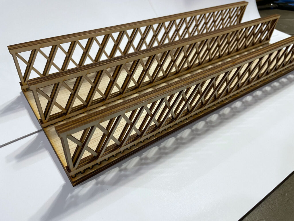 More strip wood was added on top of the ties for the workers to more easily walk on the bridge.